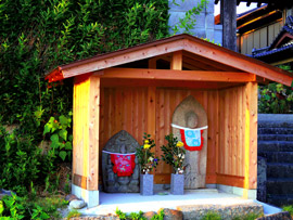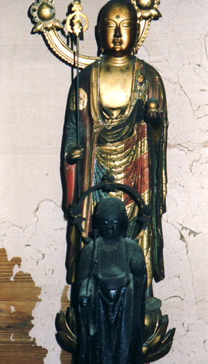 善光寺街道の要所には、善光寺のご本尊である阿弥陀三尊像(右側に観音菩薩、左側に勢至菩薩が伴った一光三尊佐弥陀如来像)が祀られている。