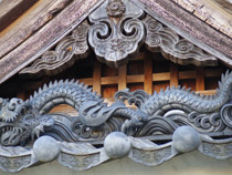 柱頭から斗きょう上の棹縁までは極彩色で飾る。両脇の間は三畳敷の最少規模の広さで外陣境を敷鴨居、内法長押、漆喰小壁、背面は腰框を付した脇仏壇を設ける。外側面は襖引違いで隣室に続く。